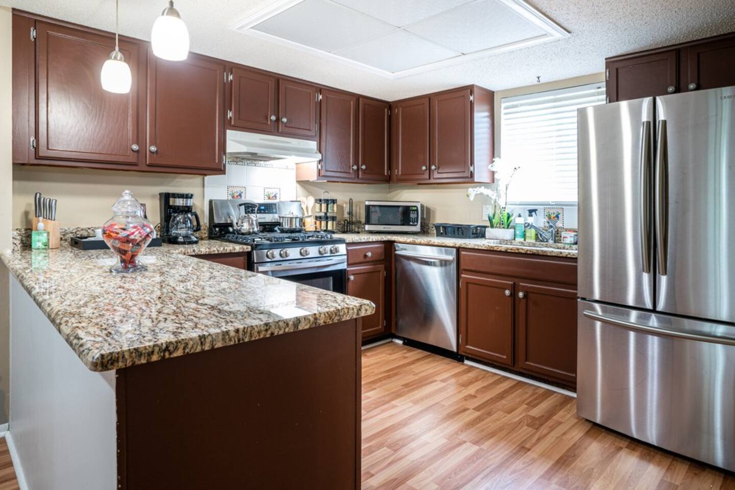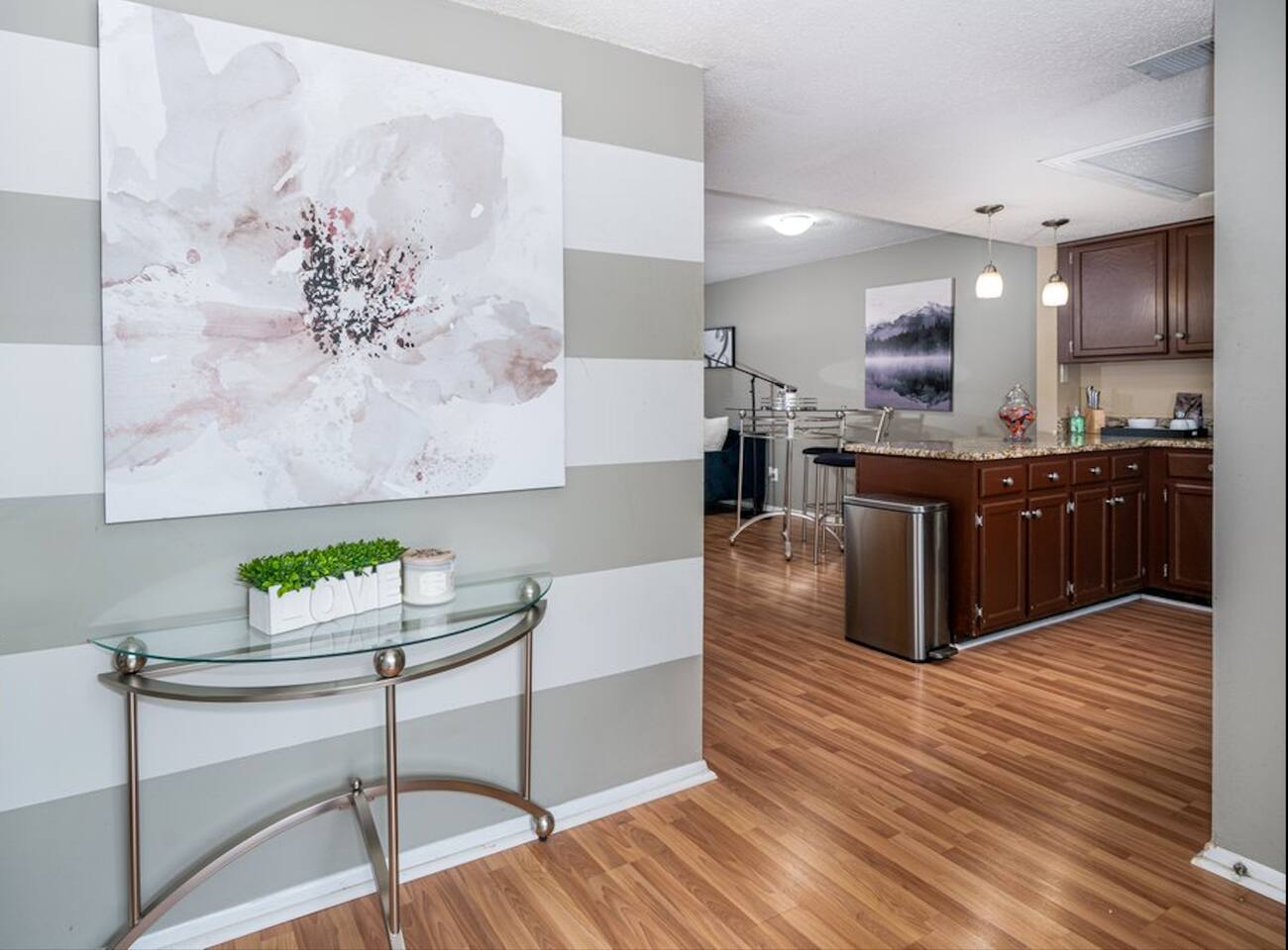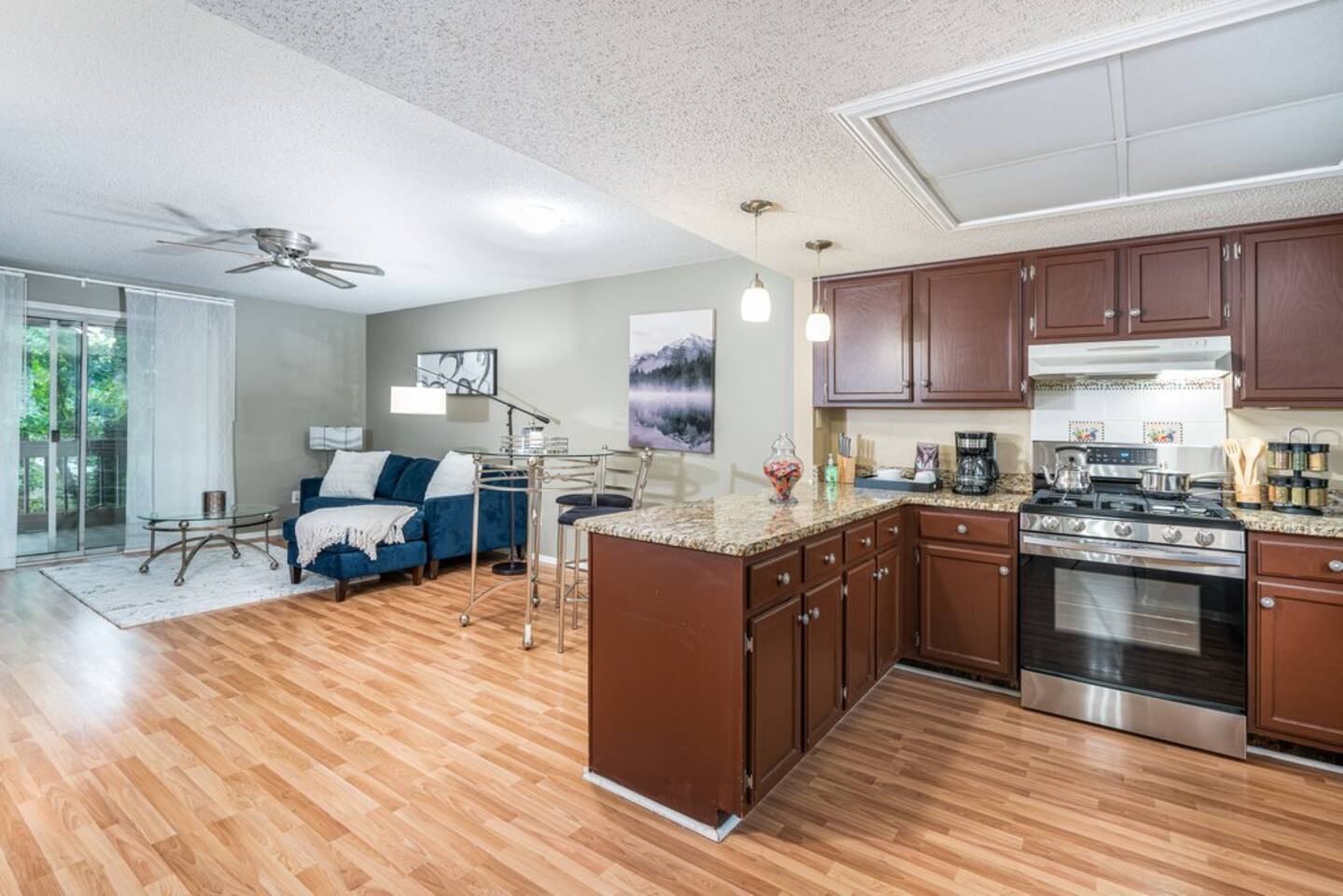 This well equipped 1 bedroom 1.5 bath condo with : - Free WiFi - Free parking on premises - Professionally cleaned and sanitized - In-unit Washer and Dryer - Fully equipped kitchen - Smart TV with Netflix, YouTube, Hulu, Disney + and more - Patio - Queen Size Bed - Monthly rates available - Iron - Work area